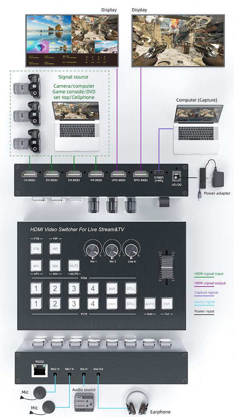 Model: V4 HDMI. 4 Channel HDMI 1080P60 Video switcher