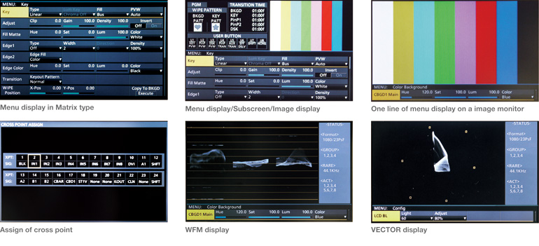 • Multi-Mode Color LCD Monitor: Built-in 7-inch multi-mode color LCD monitor for displaying versatile menus, image monitor, waveform/vectorscope, etc.