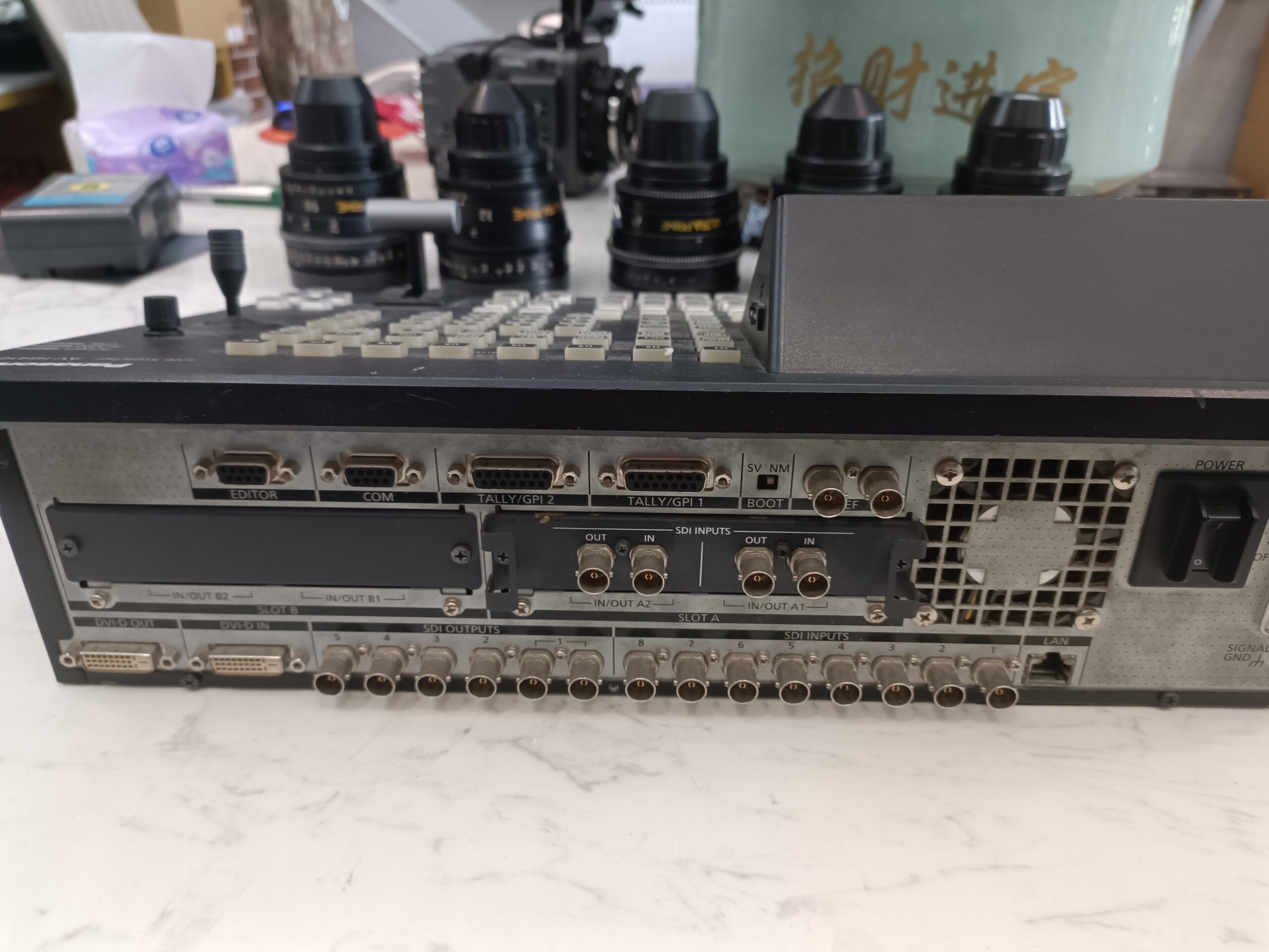 • Inputs and Outputs: Nine standard inputs (eight SDI and one DVI) and six standard outputs (five SDI and one DVI). It can be expanded with optional boards to a maximum of 13 inputs and 10 outputs.