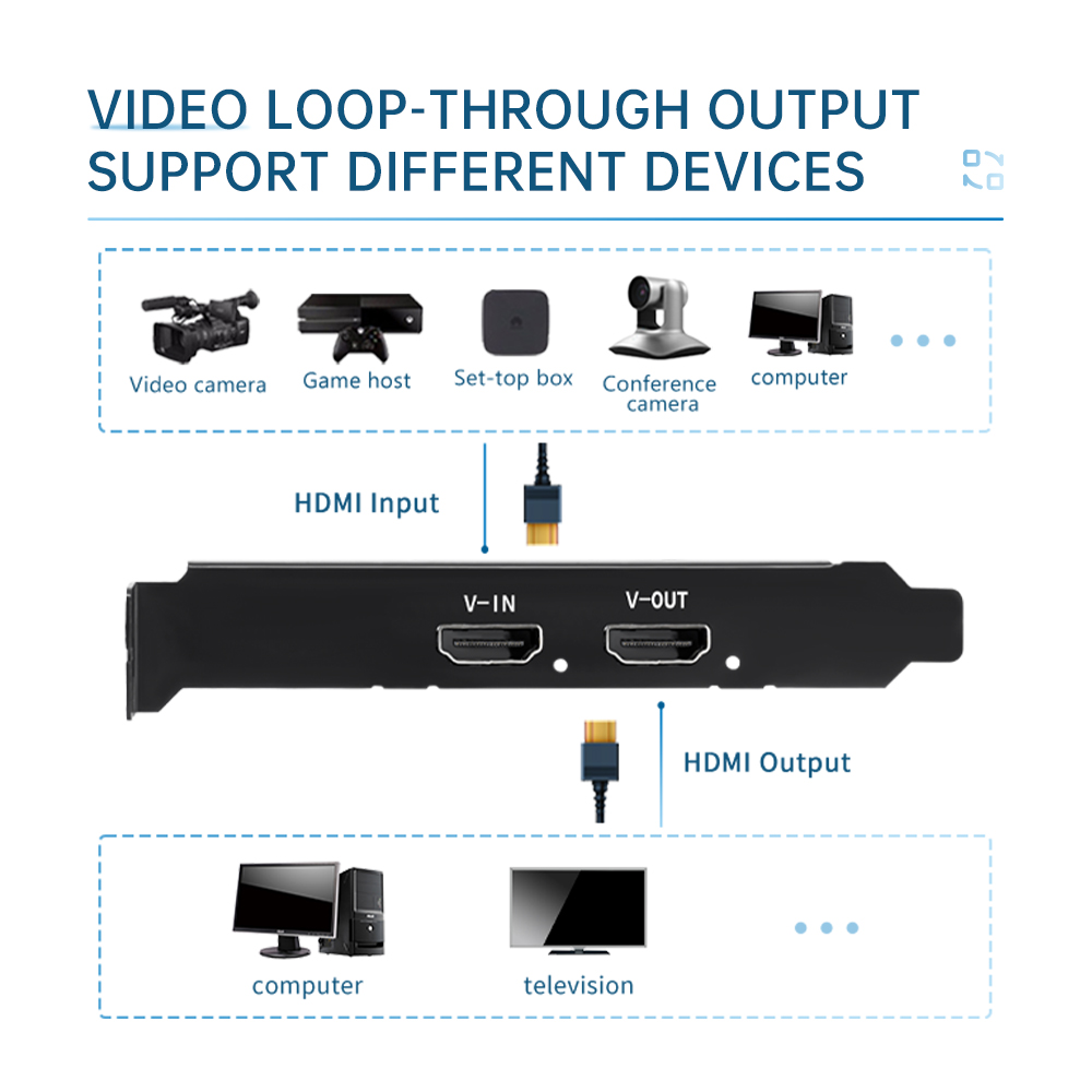 - Interface: PCIe 2.0 x4, with 1x HDMI 1.4a input and loopout, and PCIe x4 output (compatible with PCIe x8 and x16).